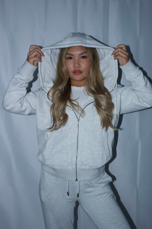 Ash Heather Grey Heavyweight Organic Brushed Zip
